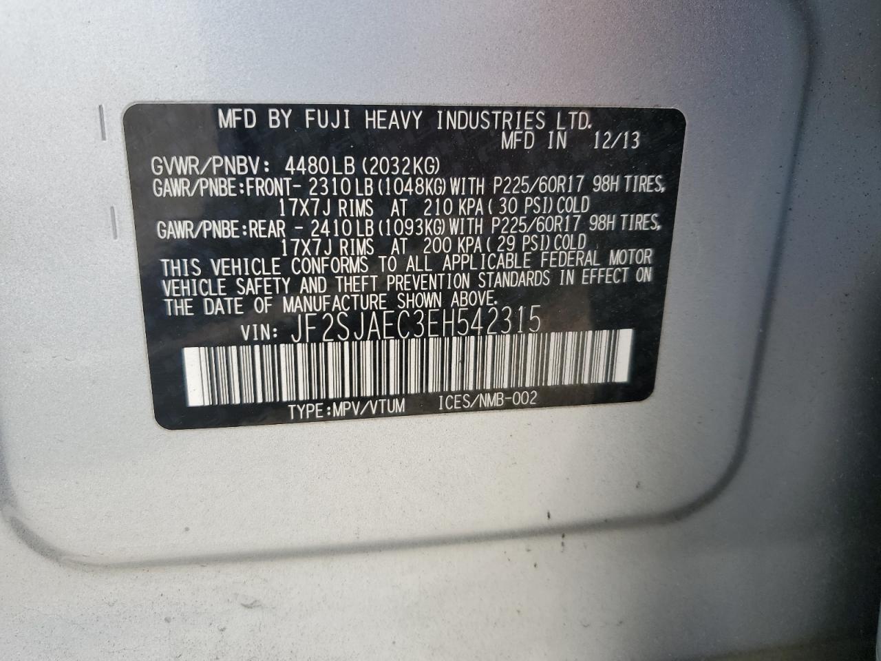 - ВИН: JF2SJAEC3EH******