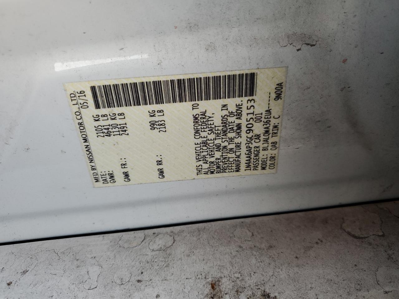 - ВИН: 1N4AA6AP3GC******