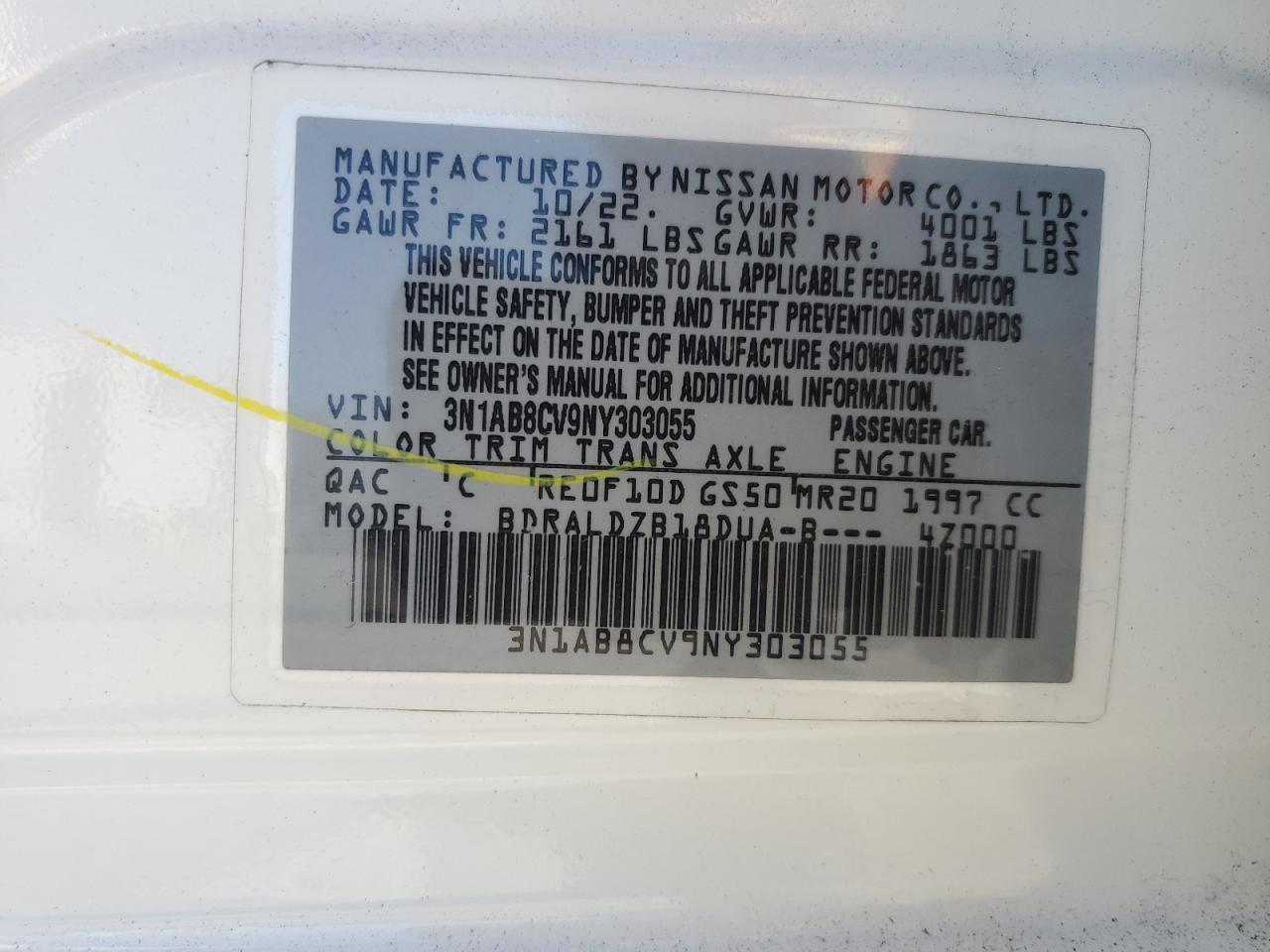 - ВИН: 3N1AB8CV9NY******