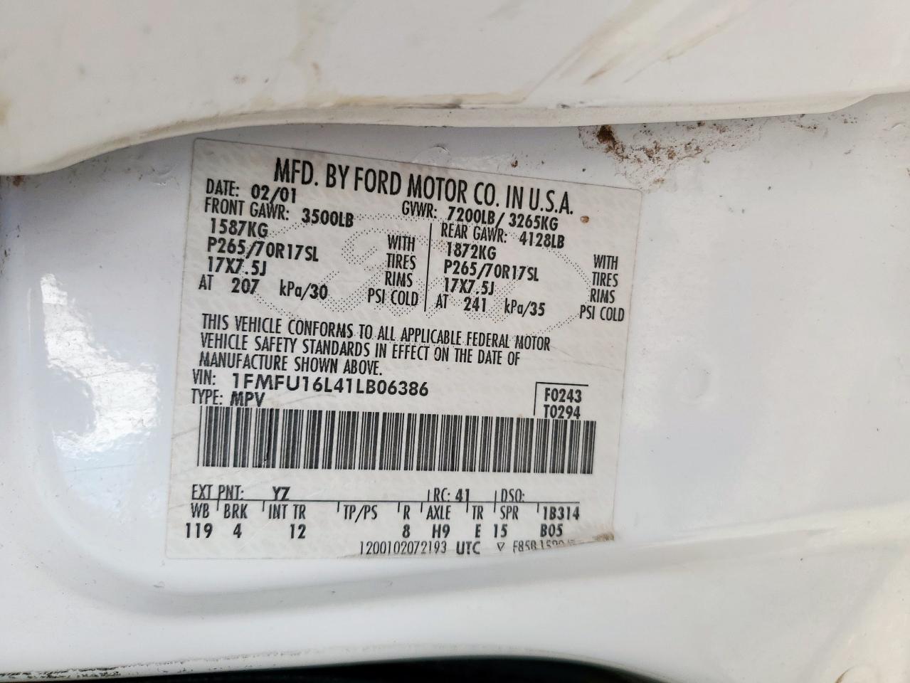 - ВИН: 1FMFU16L41L******
