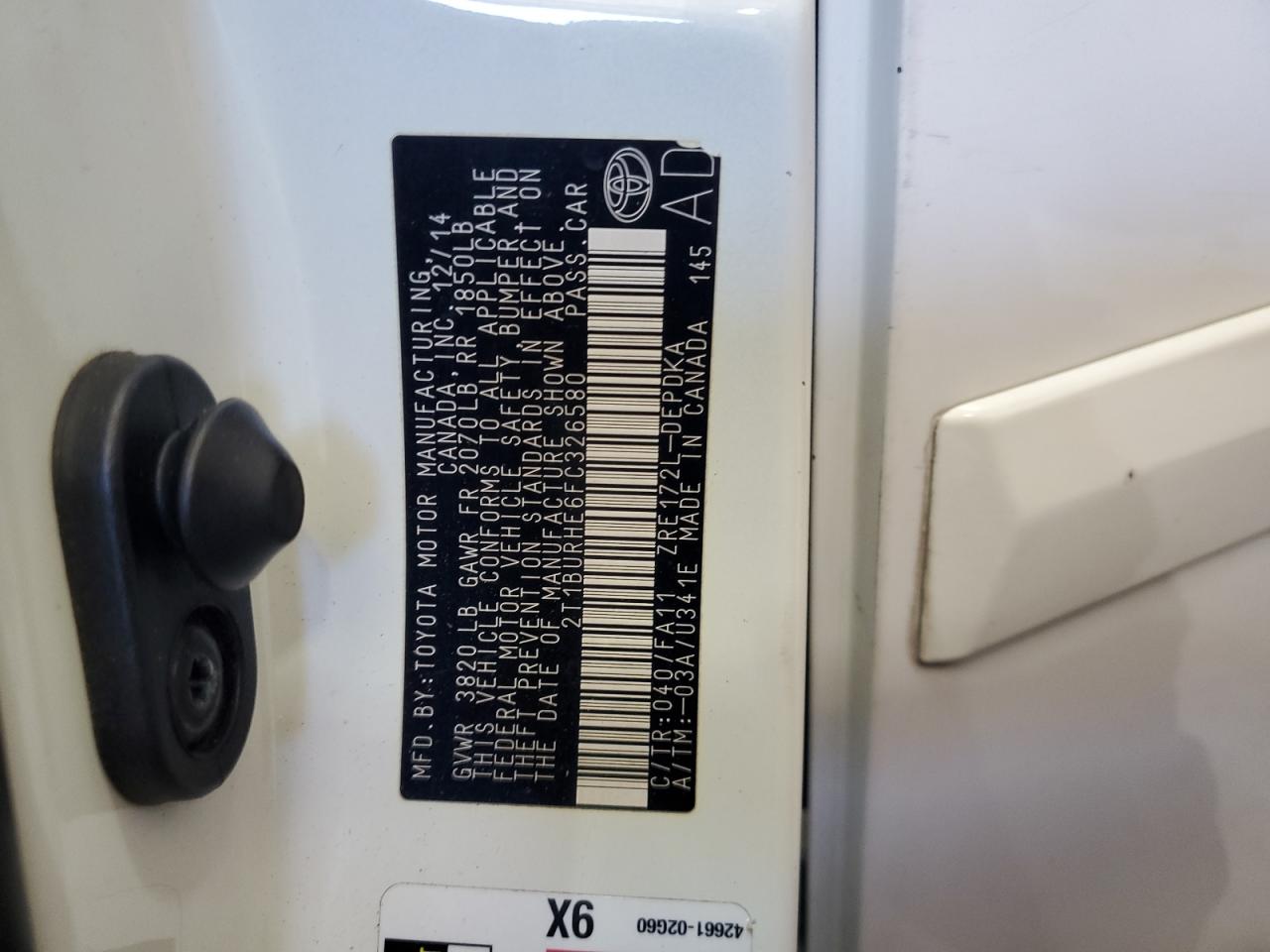 - ВИН: 2T1BURHE6FC******