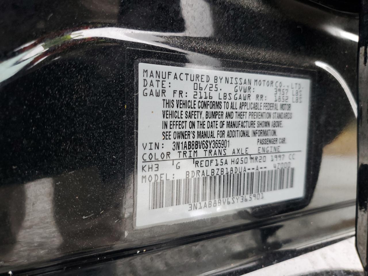 - ВИН: 3N1AB8BV6SY******