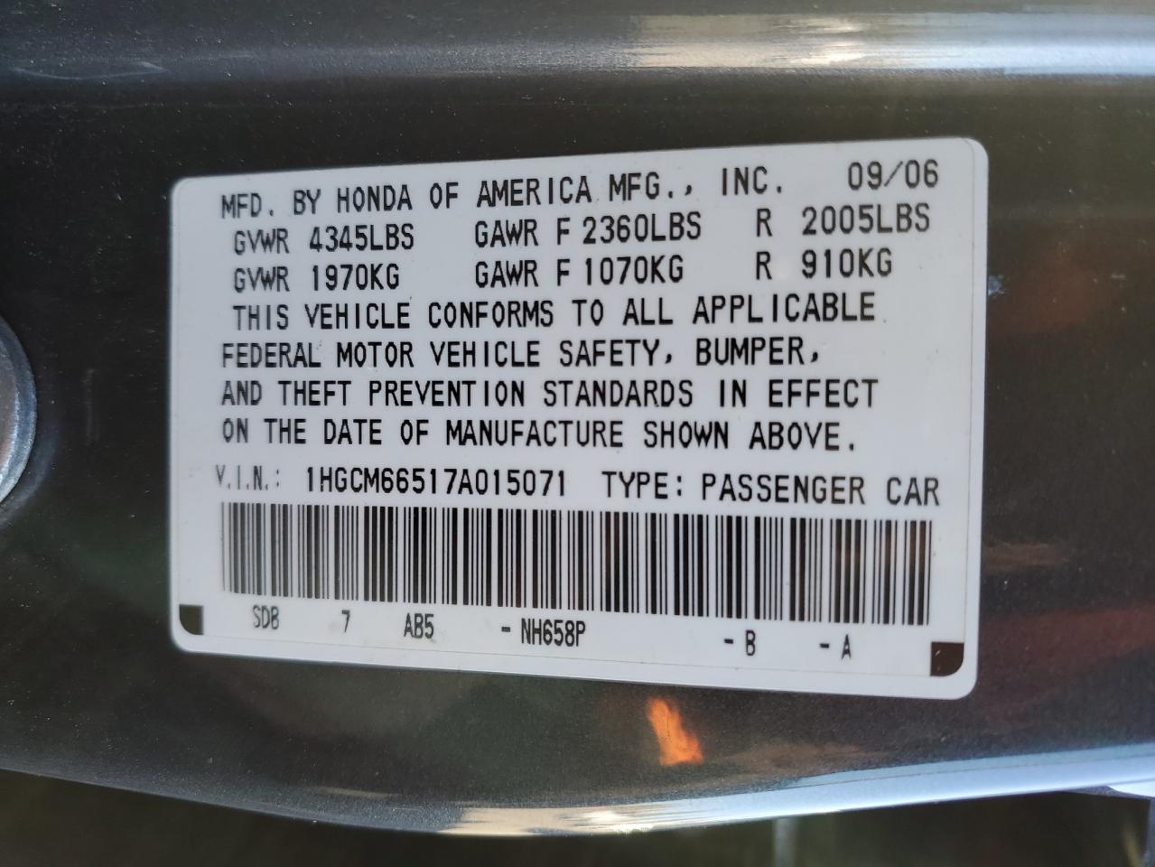 - ВИН: 1HGCM66517A******