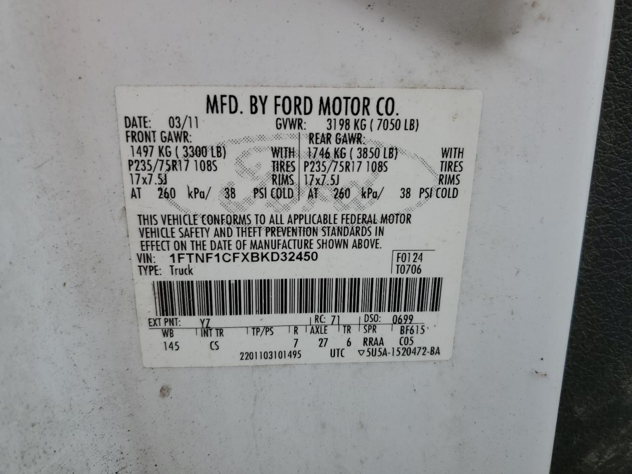 - ВИН: 1FTNF1CFXBK******