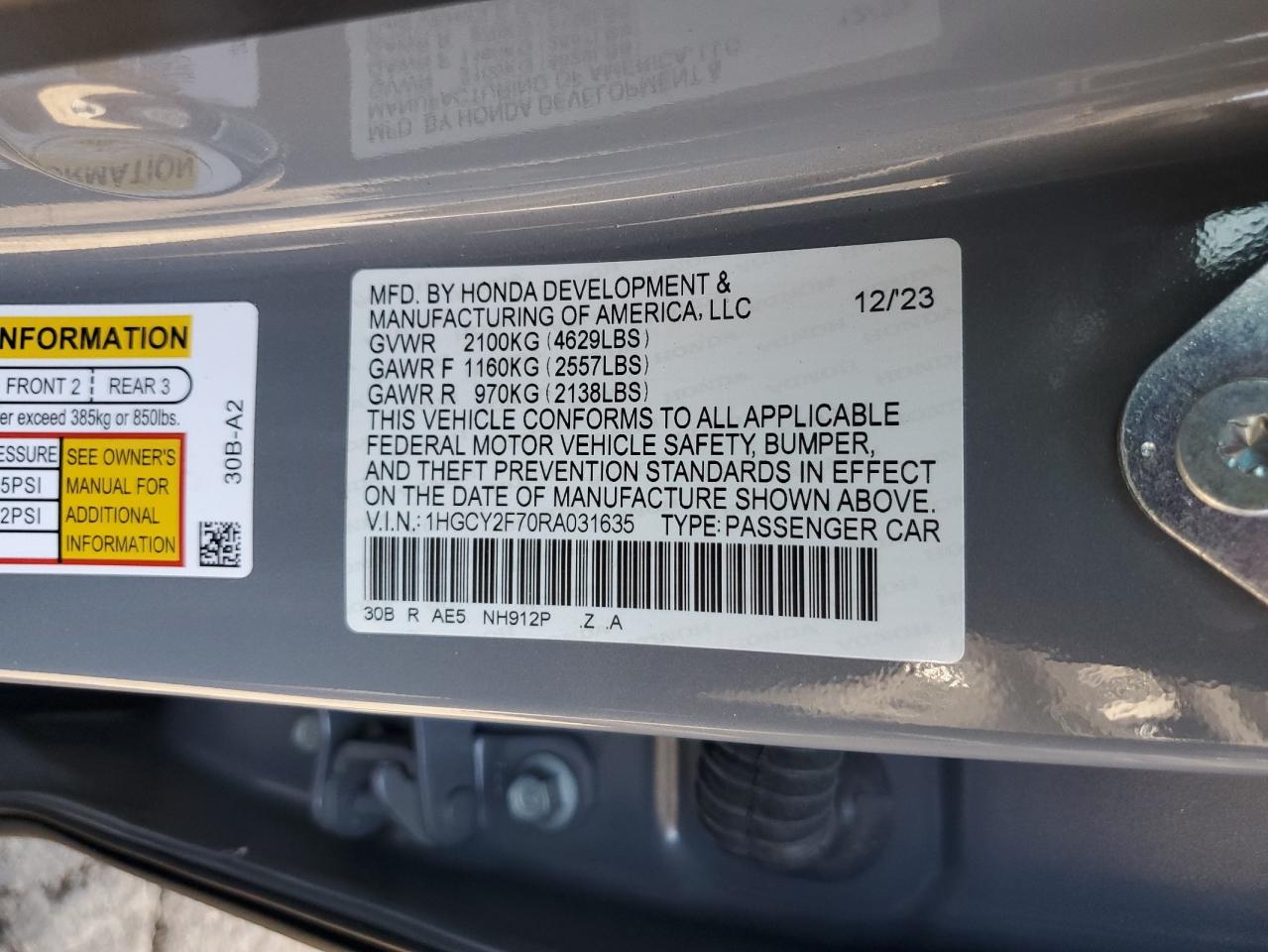 - ВИН: 1HGCY2F70RA******