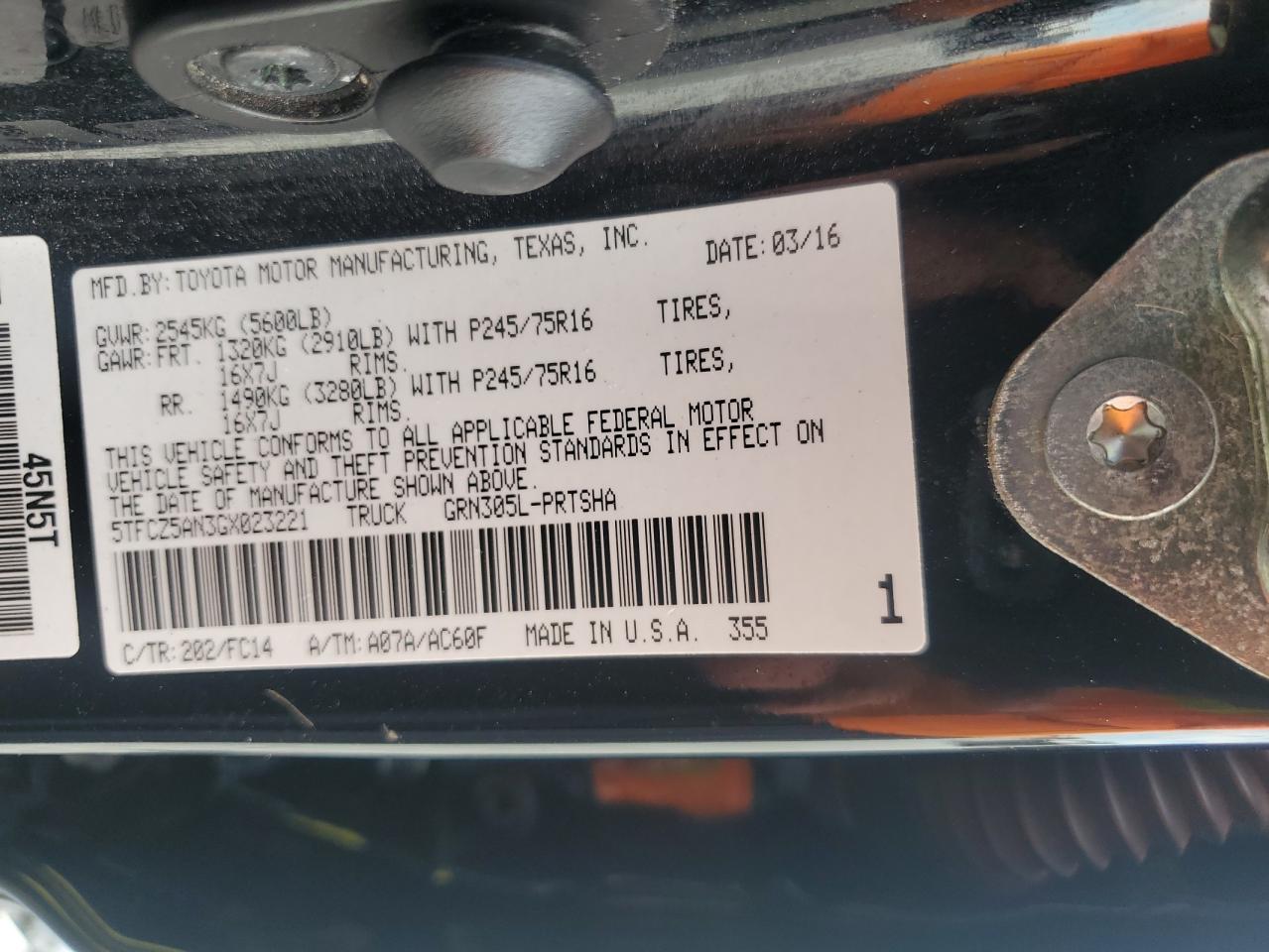 - ВИН: 5TFCZ5AN3GX******