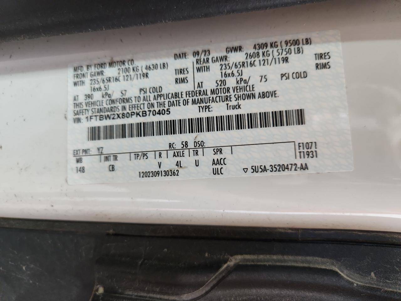 - ВИН: 1FTBW2X80PK******