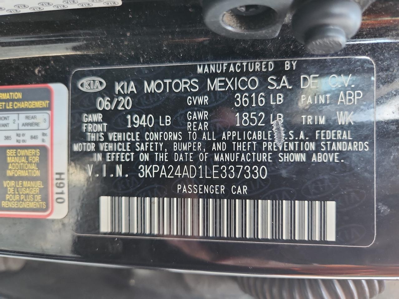 2020 KIA RIO LX из США