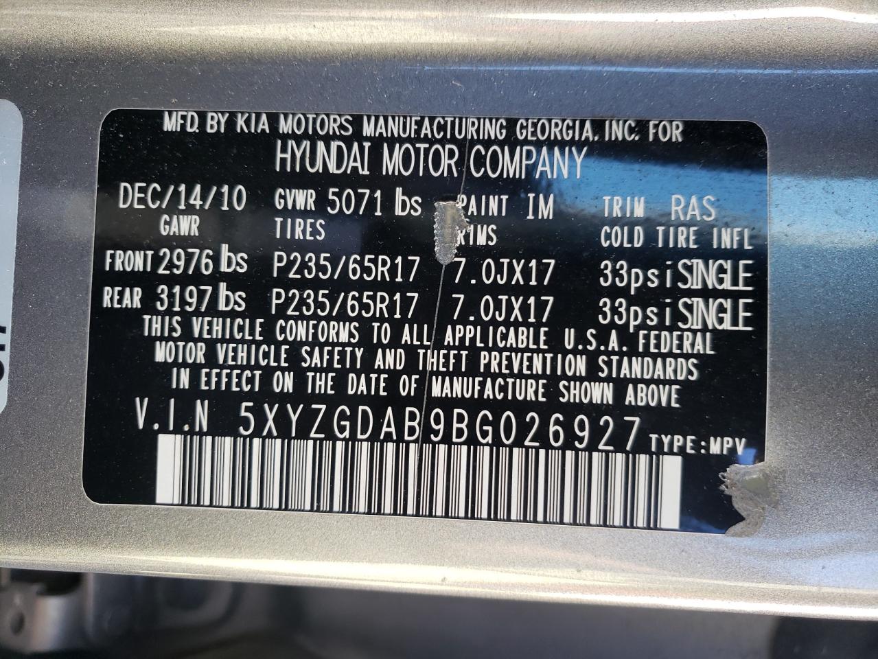 - ВИН: 5XYZGDAB9BG******