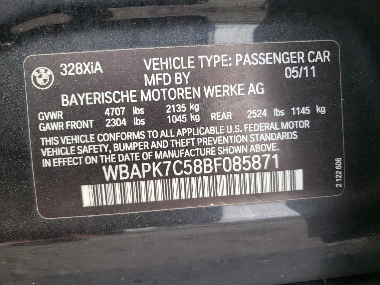 - ВИН: WBAPK7C58BF******