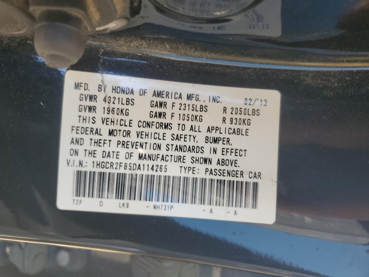 - ВИН: 1HGCR2F85DA******