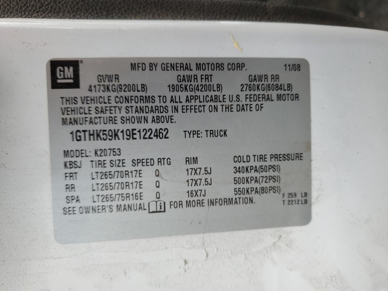 - ВИН: 1GTHK59K19E******