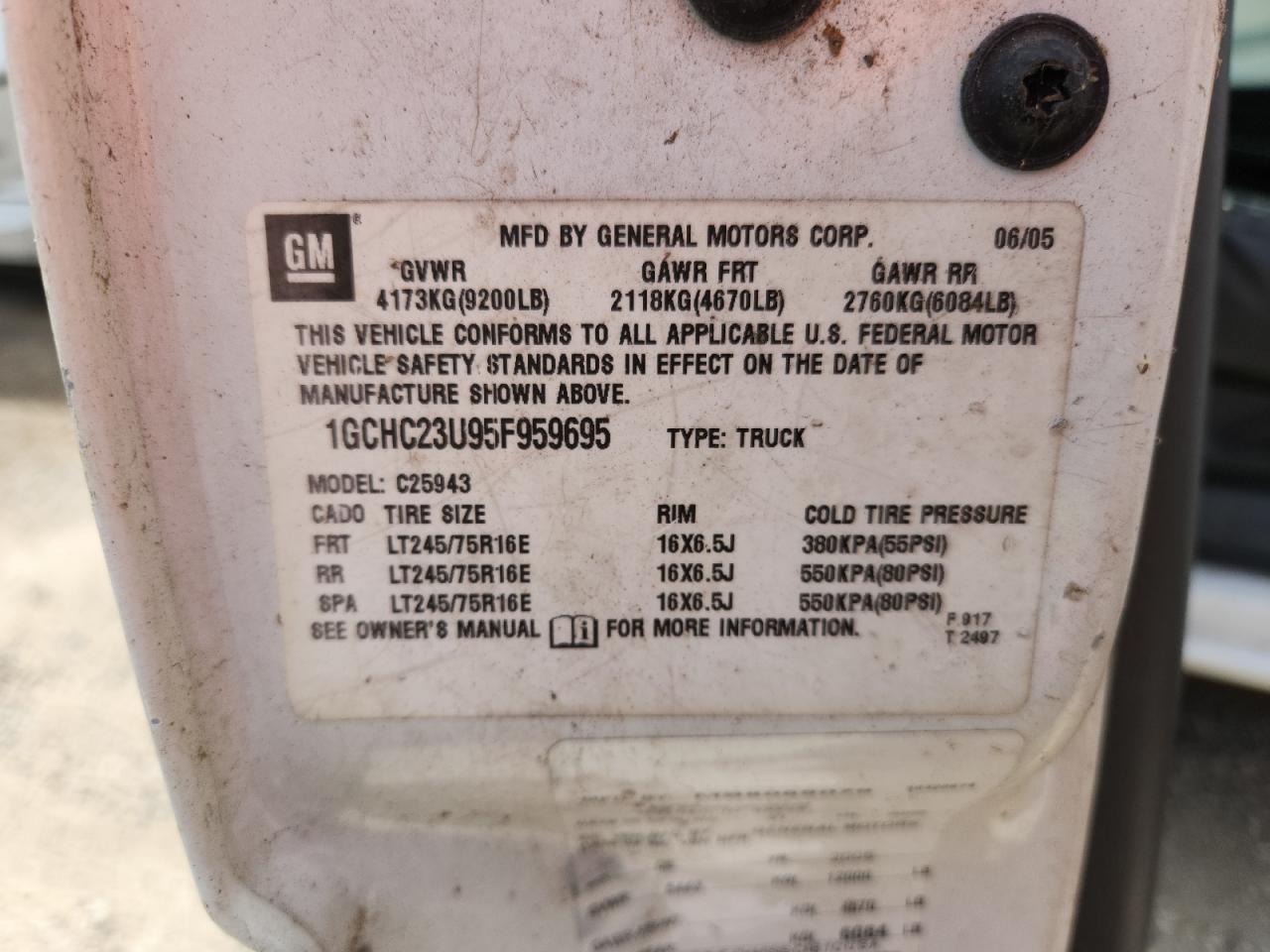 - ВИН: 1GCHC23U95F******