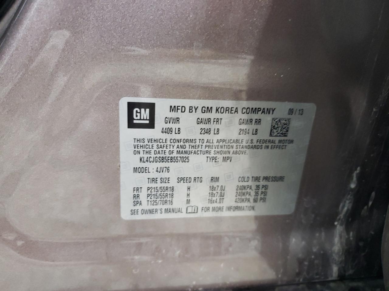 - ВИН: KL4CJGSB5EB******
