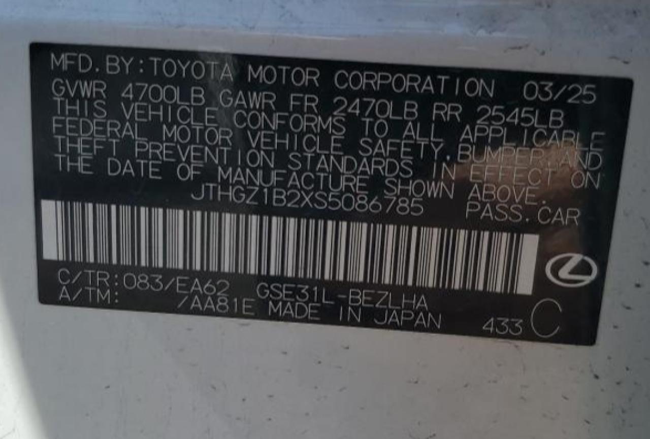 - ВИН: JTHGZ1B2XS5******