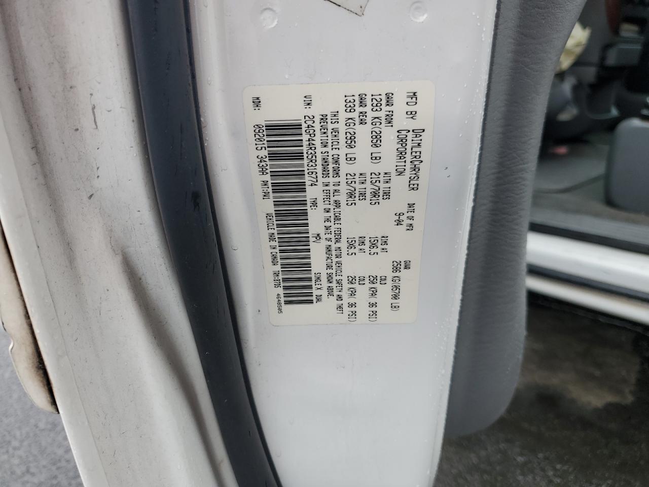 - ВИН: 2C4GP44R35R******