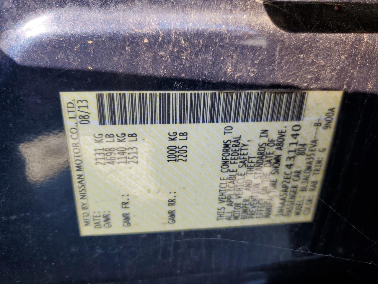 - ВИН: 1N4AA5AP2EC******