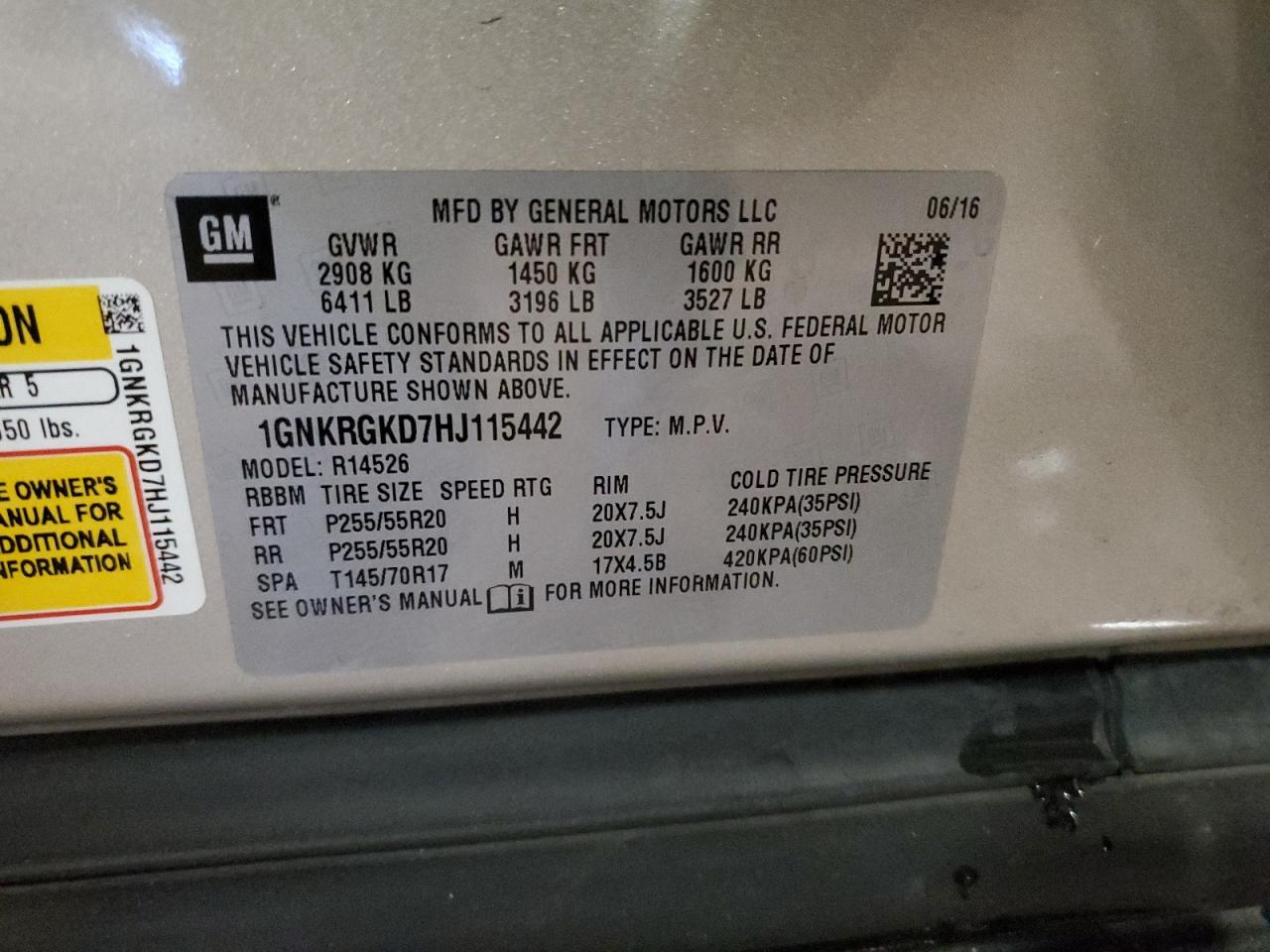 - ВИН: 1GNKRGKD7HJ******