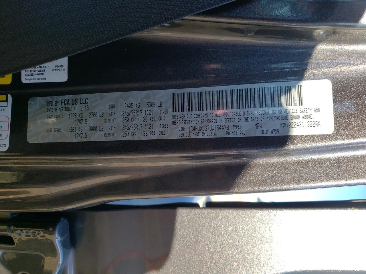 - ВИН: 1C4HJXDG7JW******