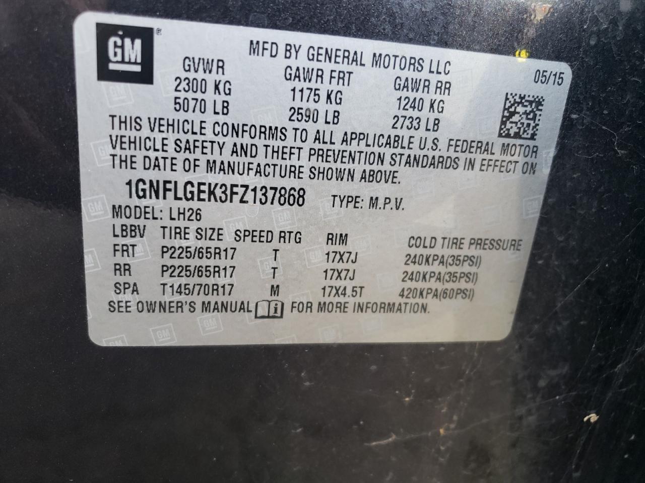- ВИН: 1GNFLGEK3FZ******