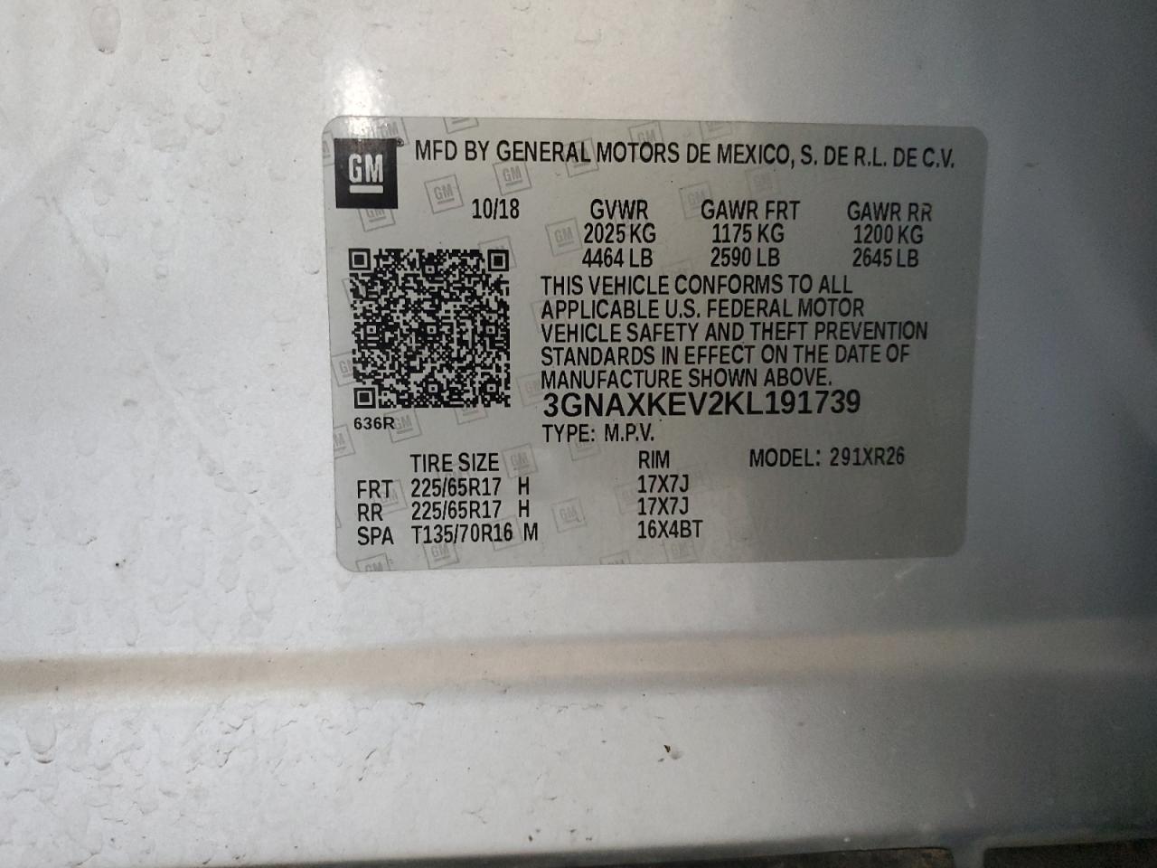 - ВИН: 3GNAXKEV2KL******