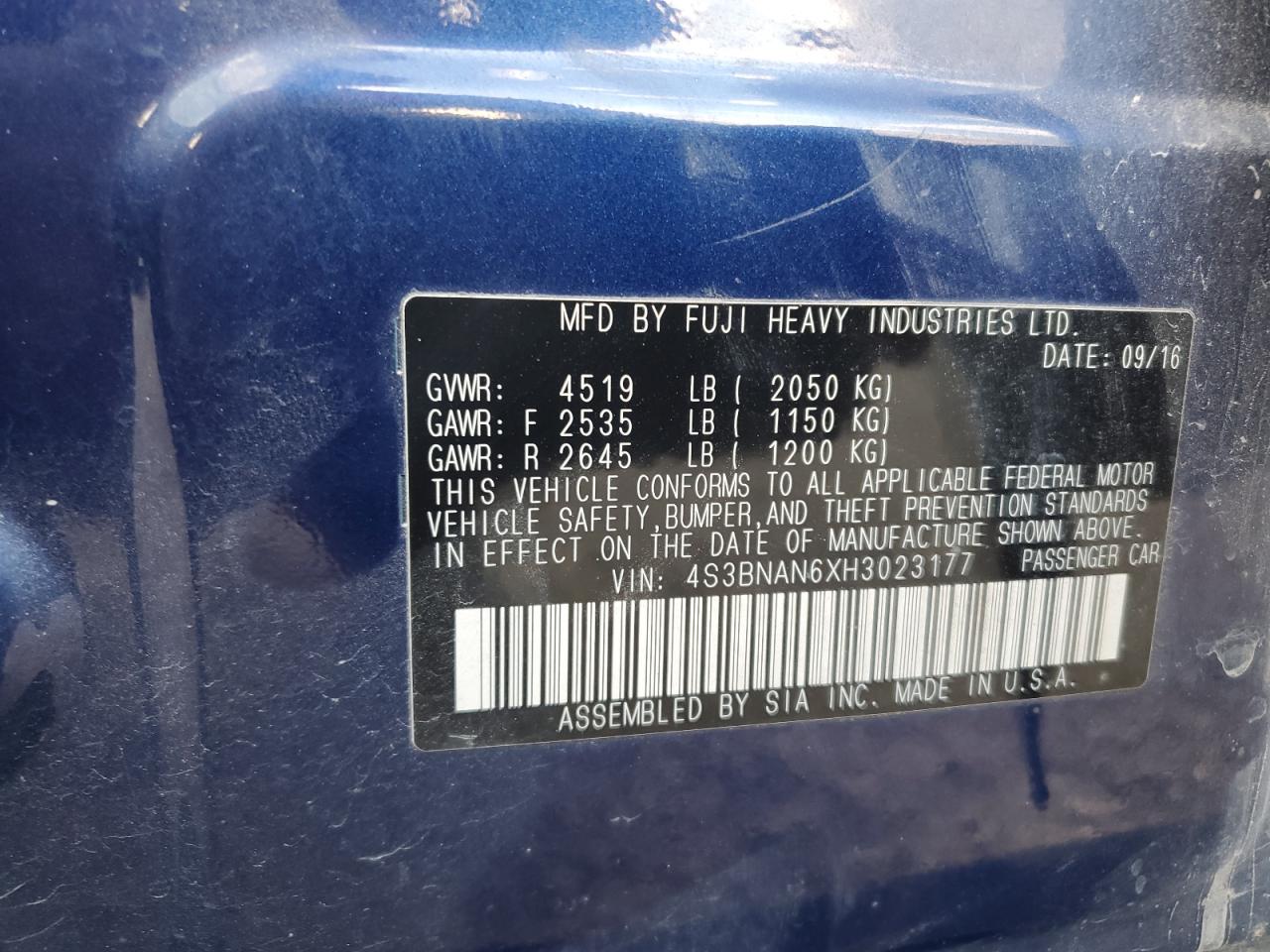 - ВИН: 4S3BNAN6XH3******