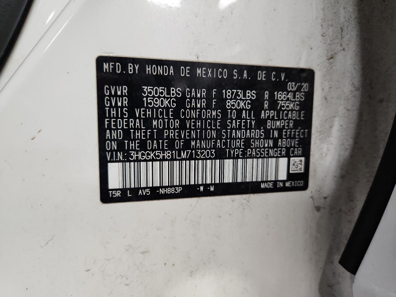 - ВИН: 3HGGK5H81LM******