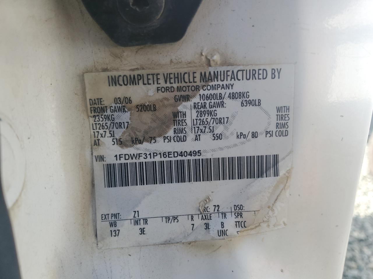 - ВИН: 1FDWF31P16E******