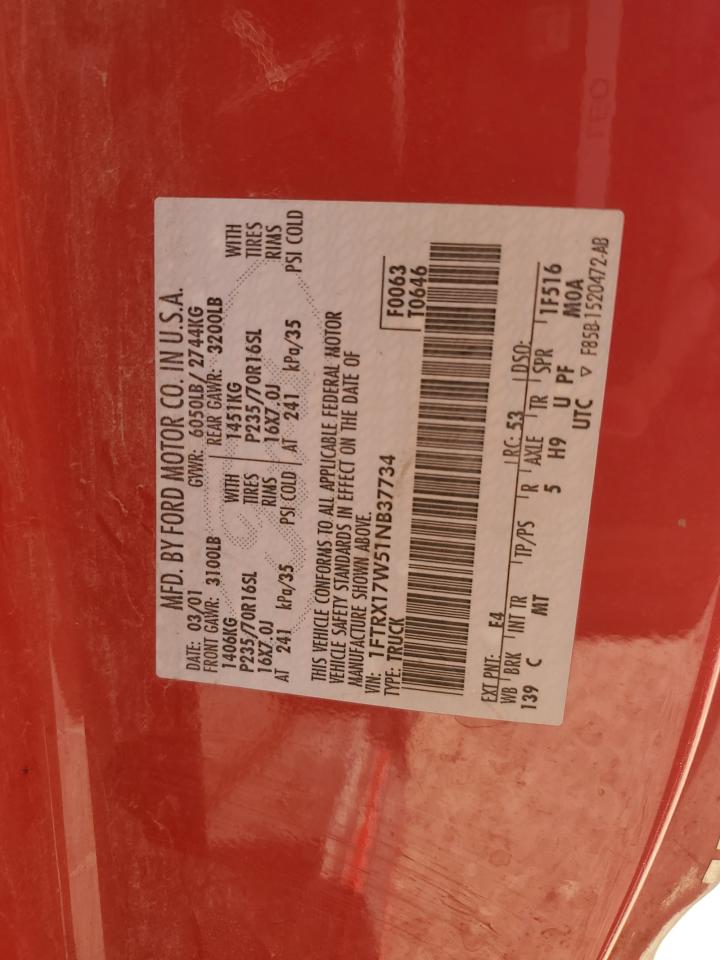 - ВИН: 1FTRX17W51N******