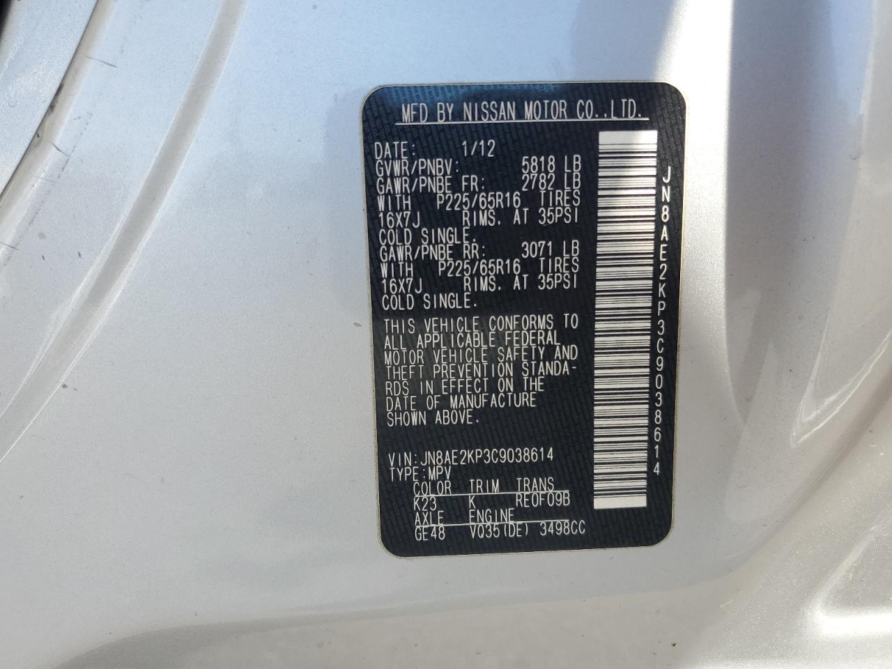 - ВИН: JN8AE2KP3C9******