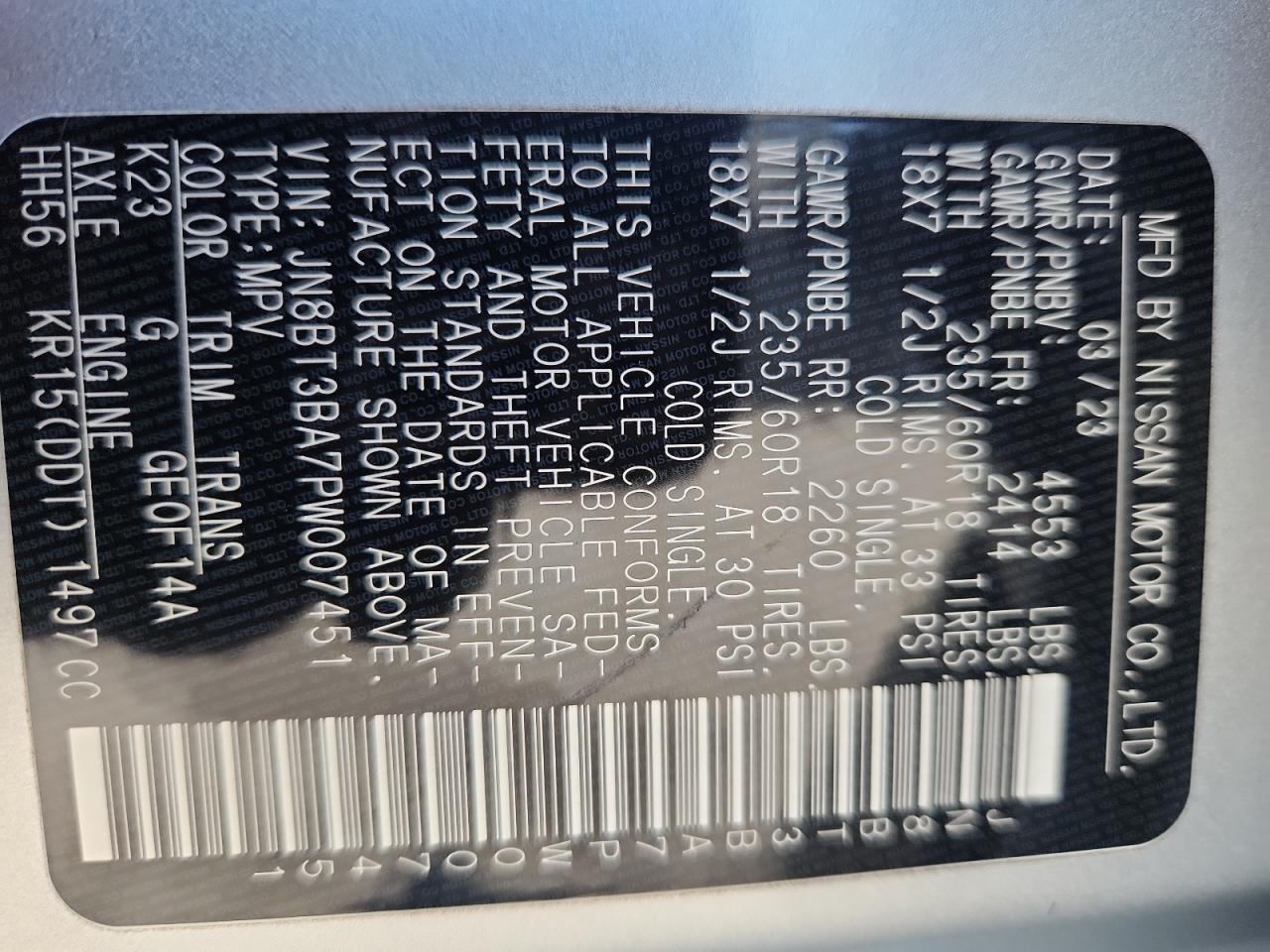 - ВИН: JN8BT3BA7PW******