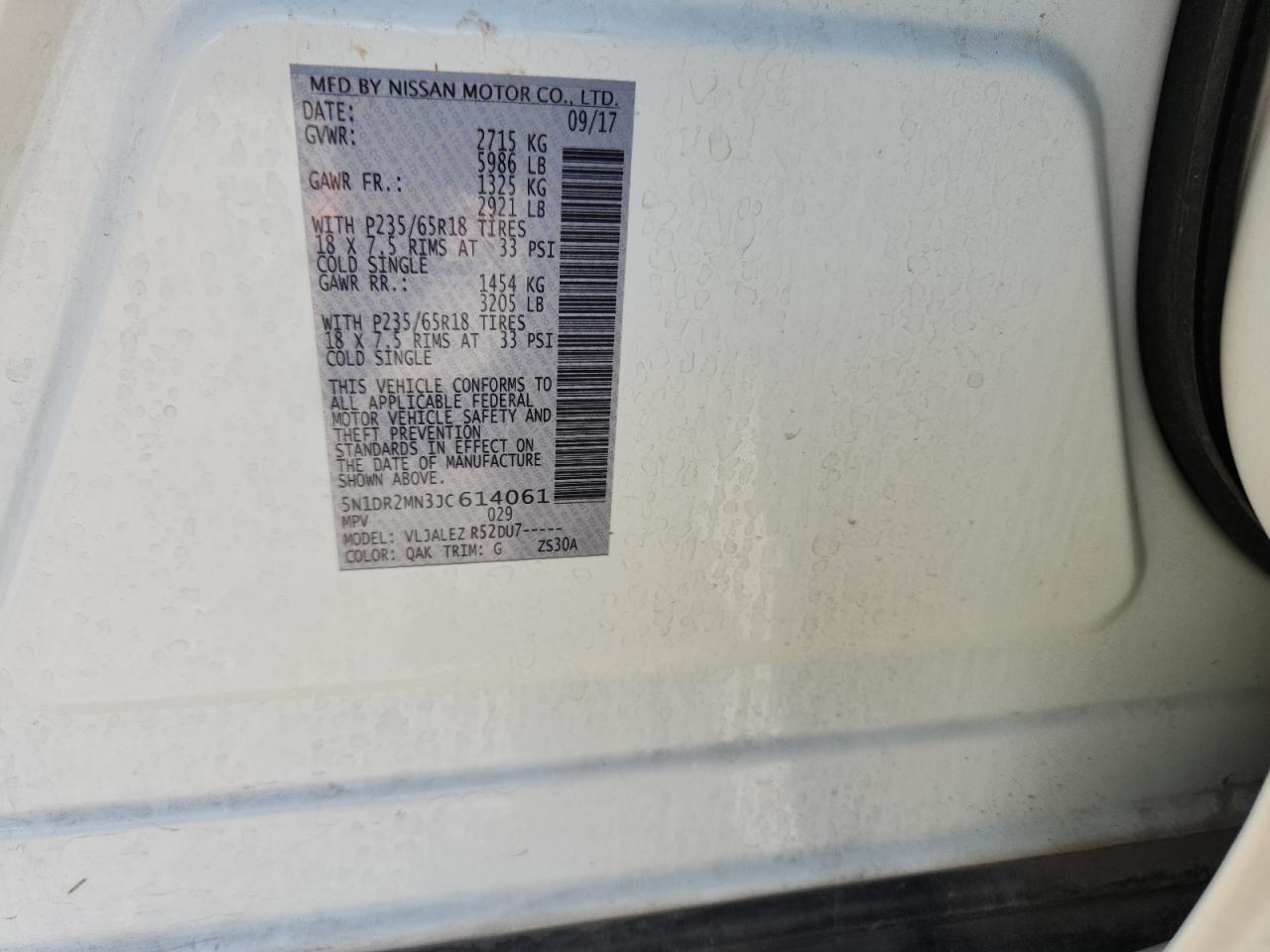 - ВИН: 5N1DR2MN3JC******