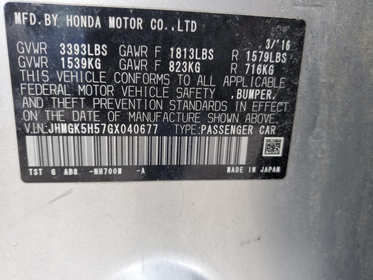 - ВИН: JHMGK5H57GX******