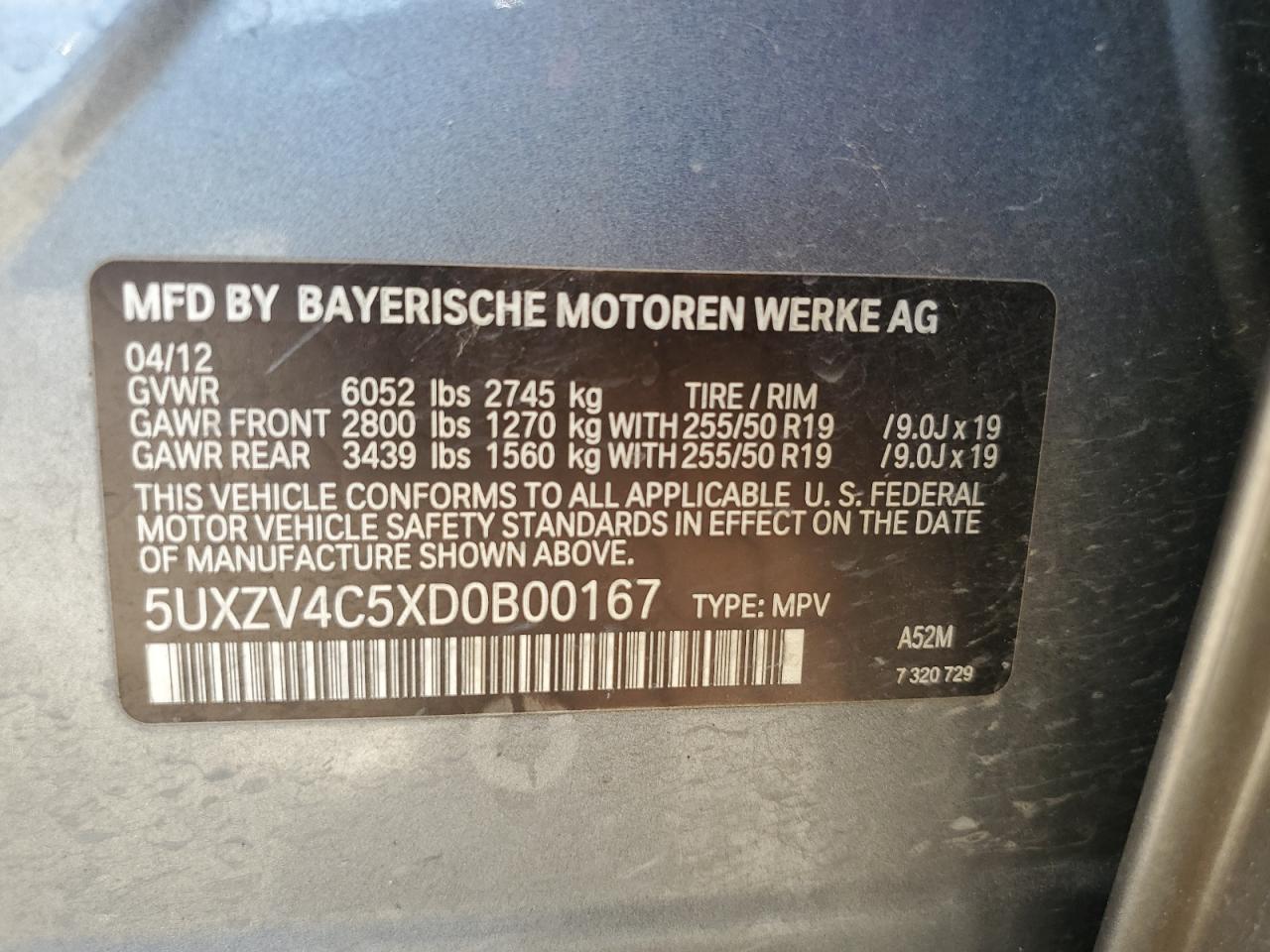 - ВИН: 5UXZV4C5XD0******