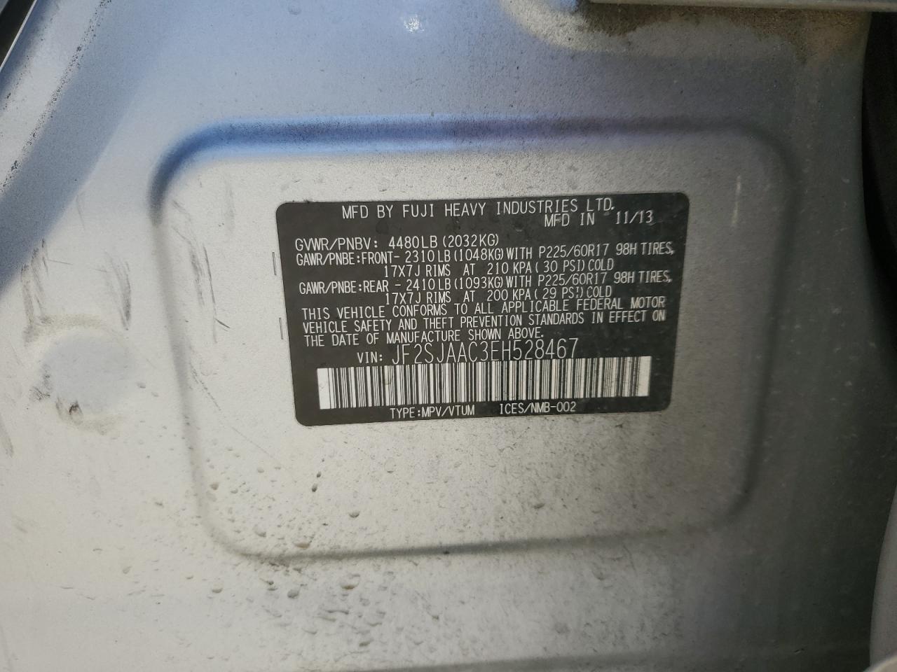 - ВИН: JF2SJAAC3EH******