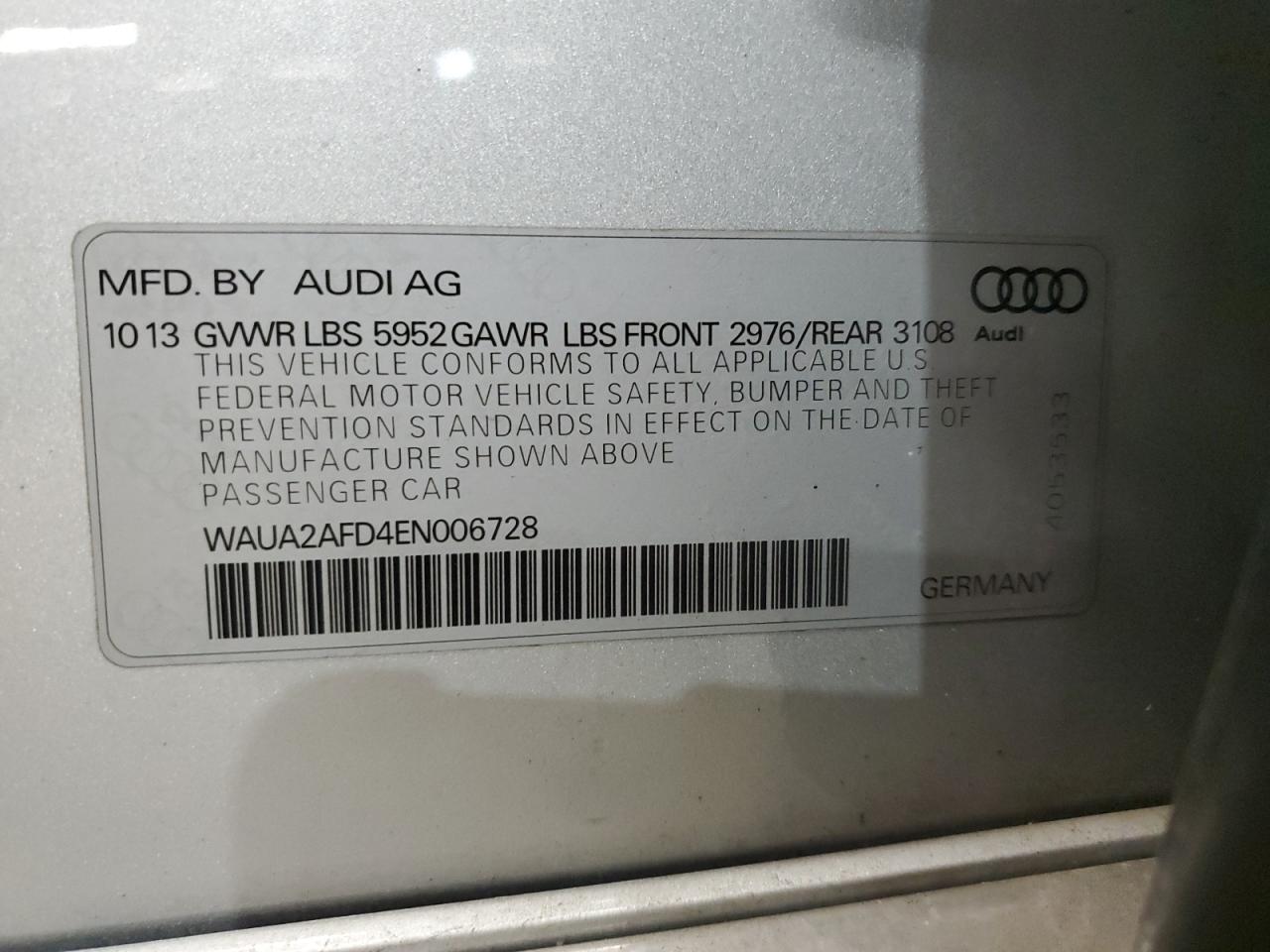 - ВИН: WAUA2AFD4EN******