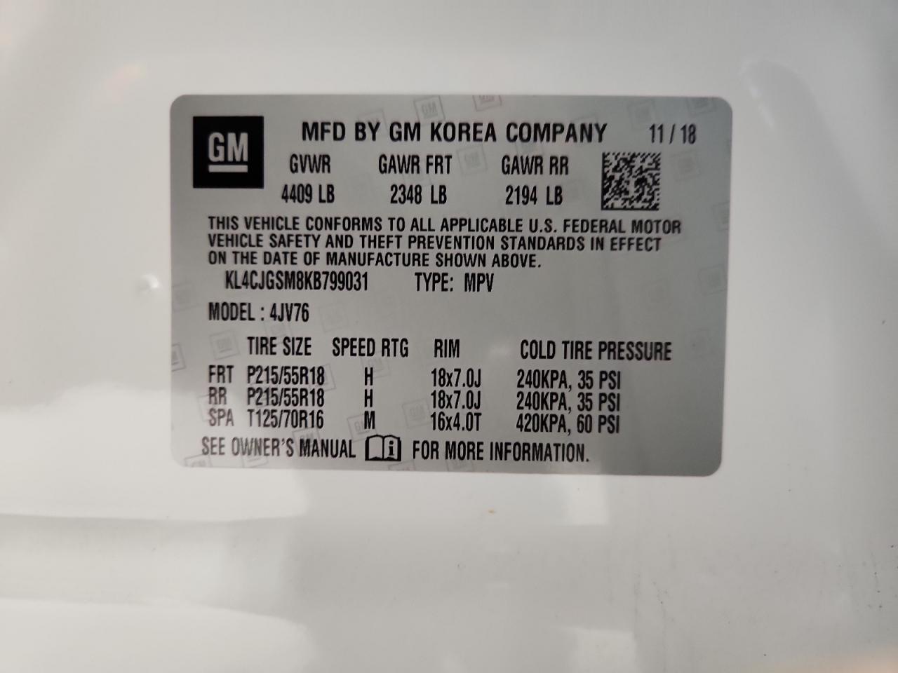 - ВИН: KL4CJGSM8KB******