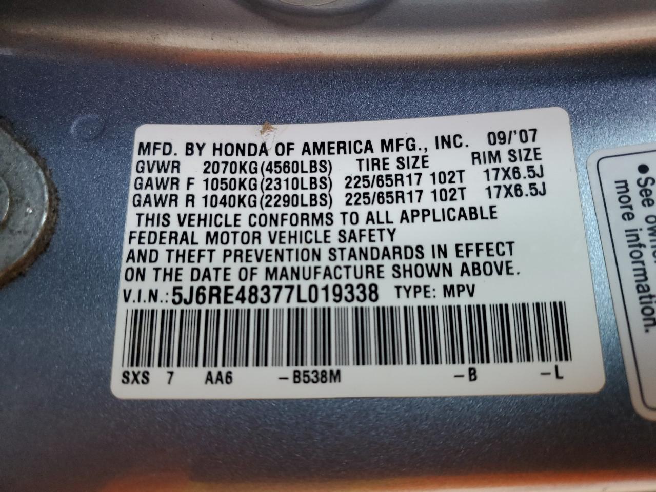2007 HONDA CR-V LX из США