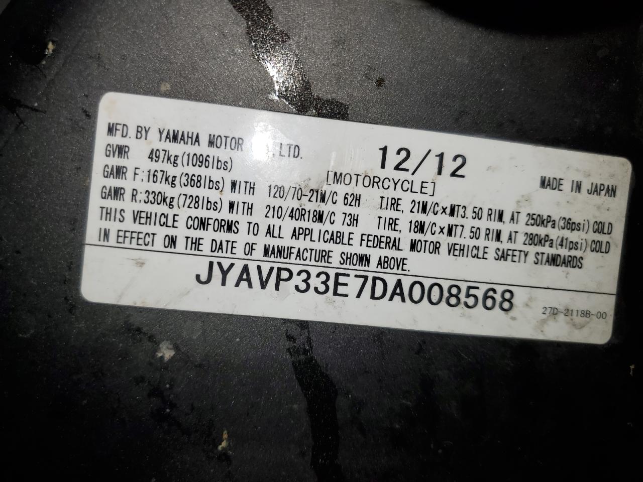 - ВИН: JYAVP33E7DA******