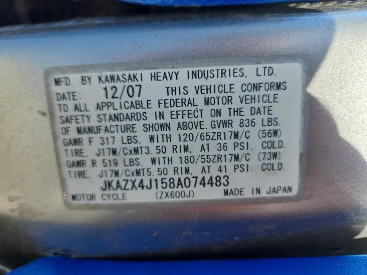 2008 KAWASAKI ZX600 J1 из США