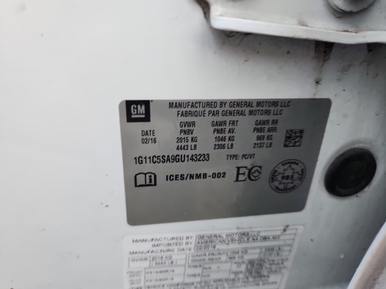- ВИН: 1G11C5SA9GU******