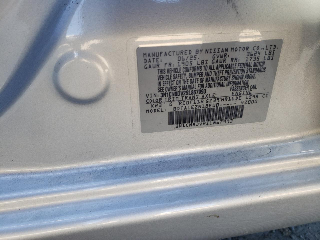 - ВИН: 3N1CN8DV2SL******