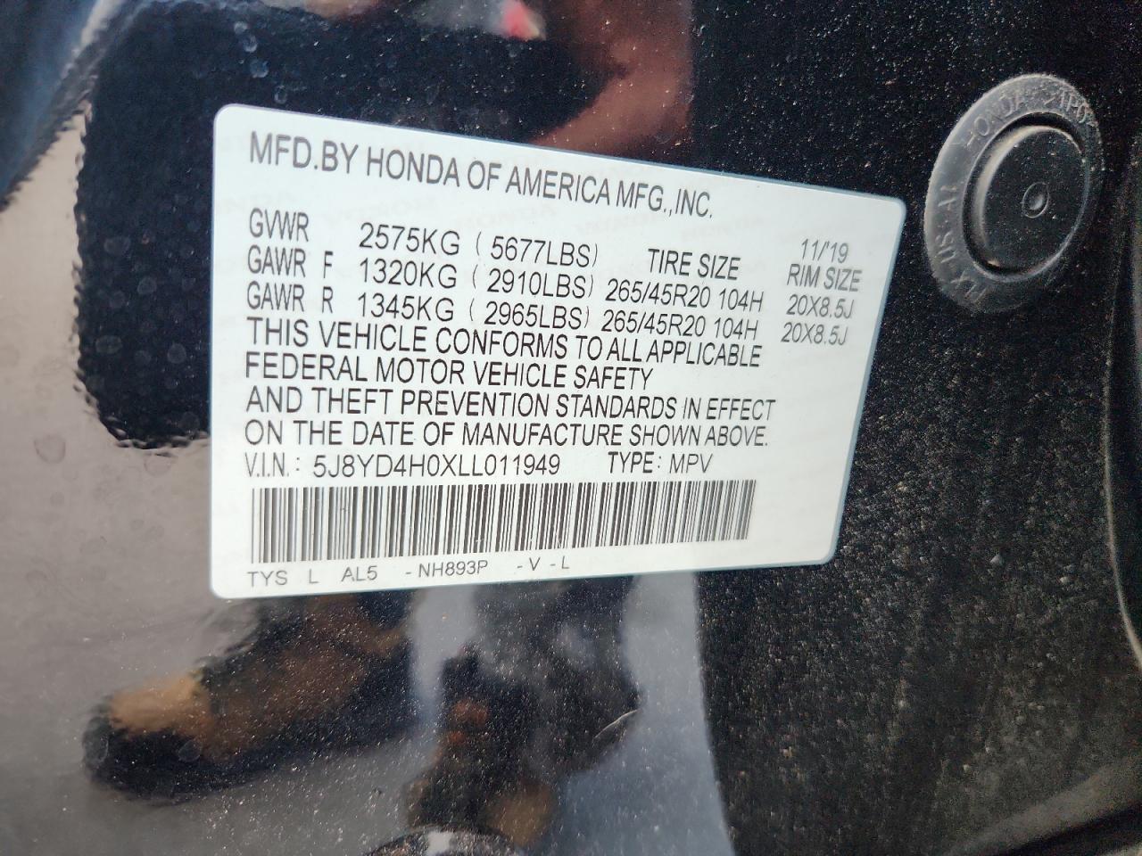 - ВИН: 5J8YD4H0XLL******