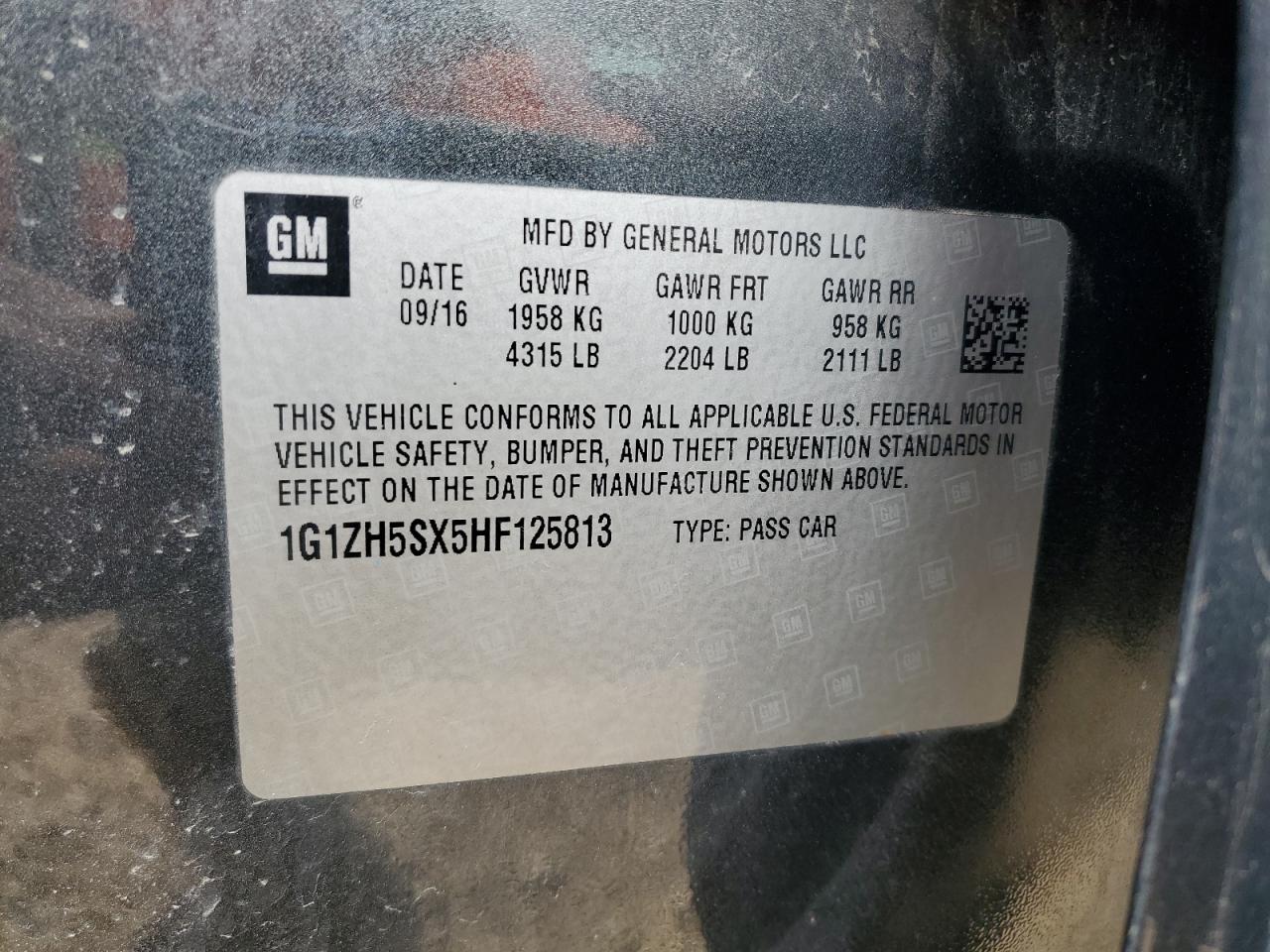 - ВИН: 1G1ZH5SX5HF******
