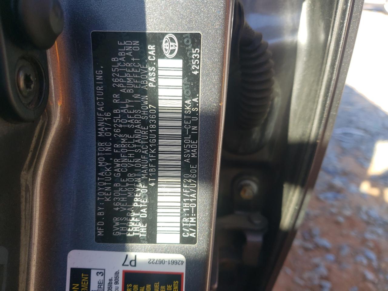 - ВИН: 4T1BF1FK1GU******