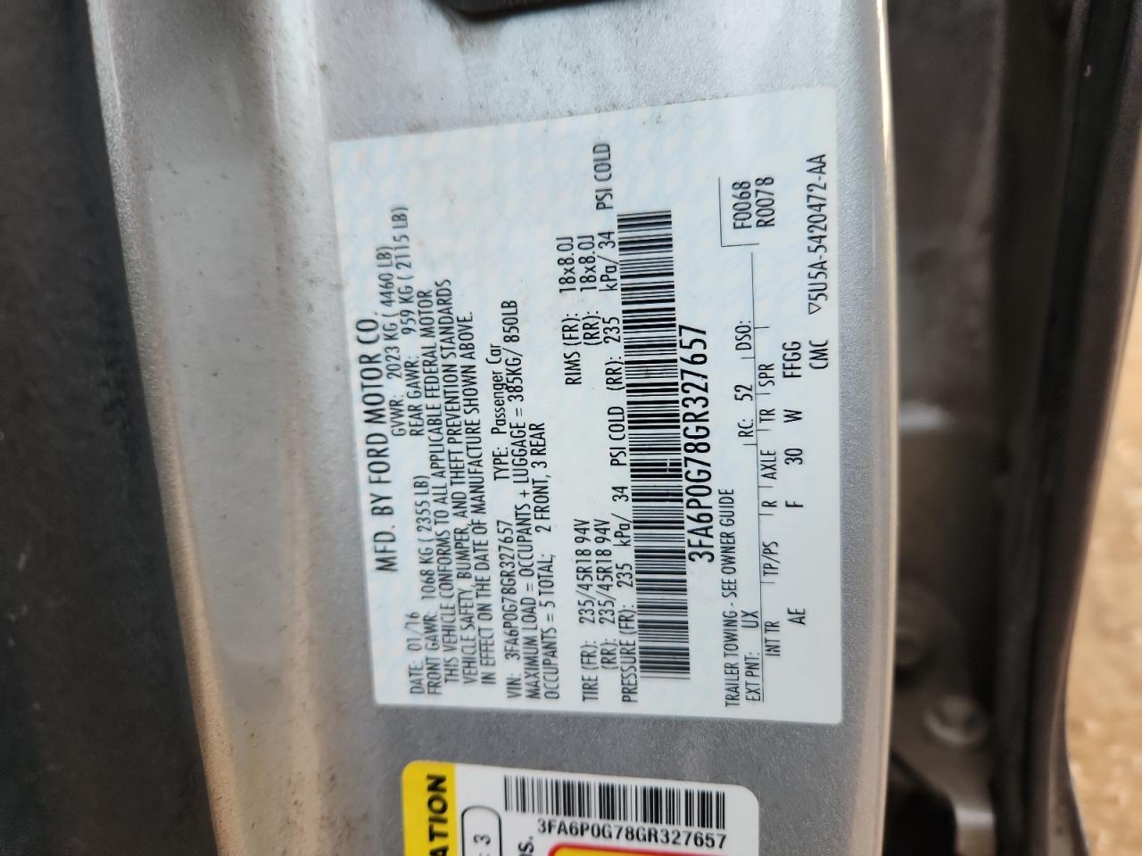 - ВИН: 3FA6P0G78GR******
