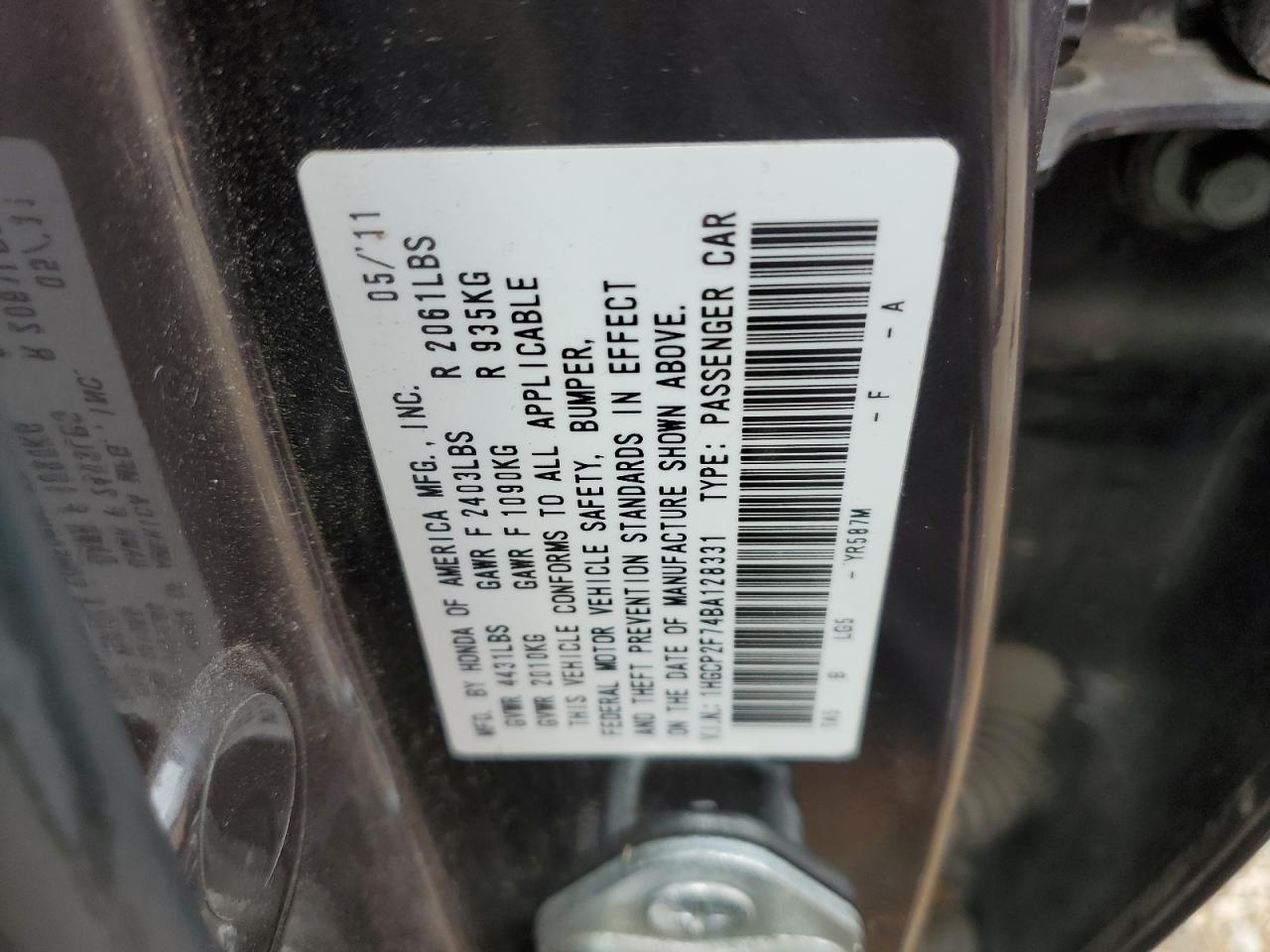 - ВИН: 1HGCP2F74BA******