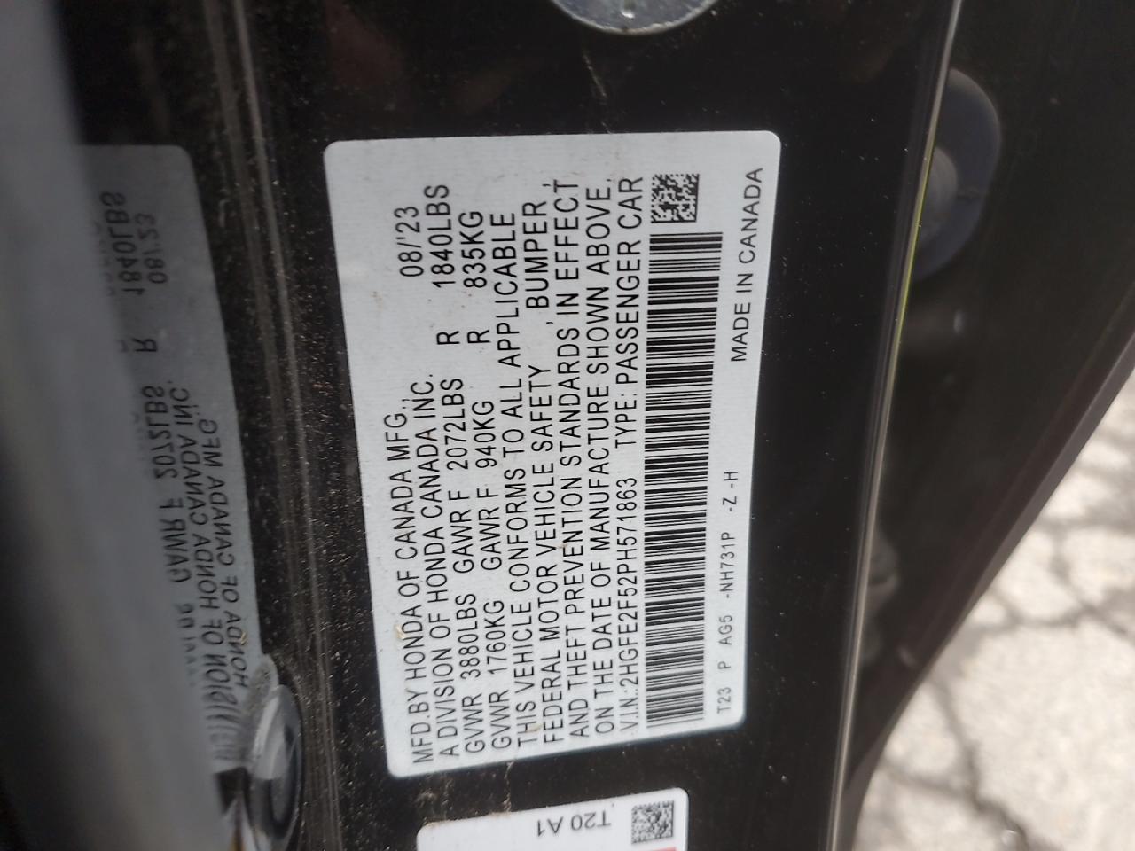 - ВИН: 2HGFE2F52PH******