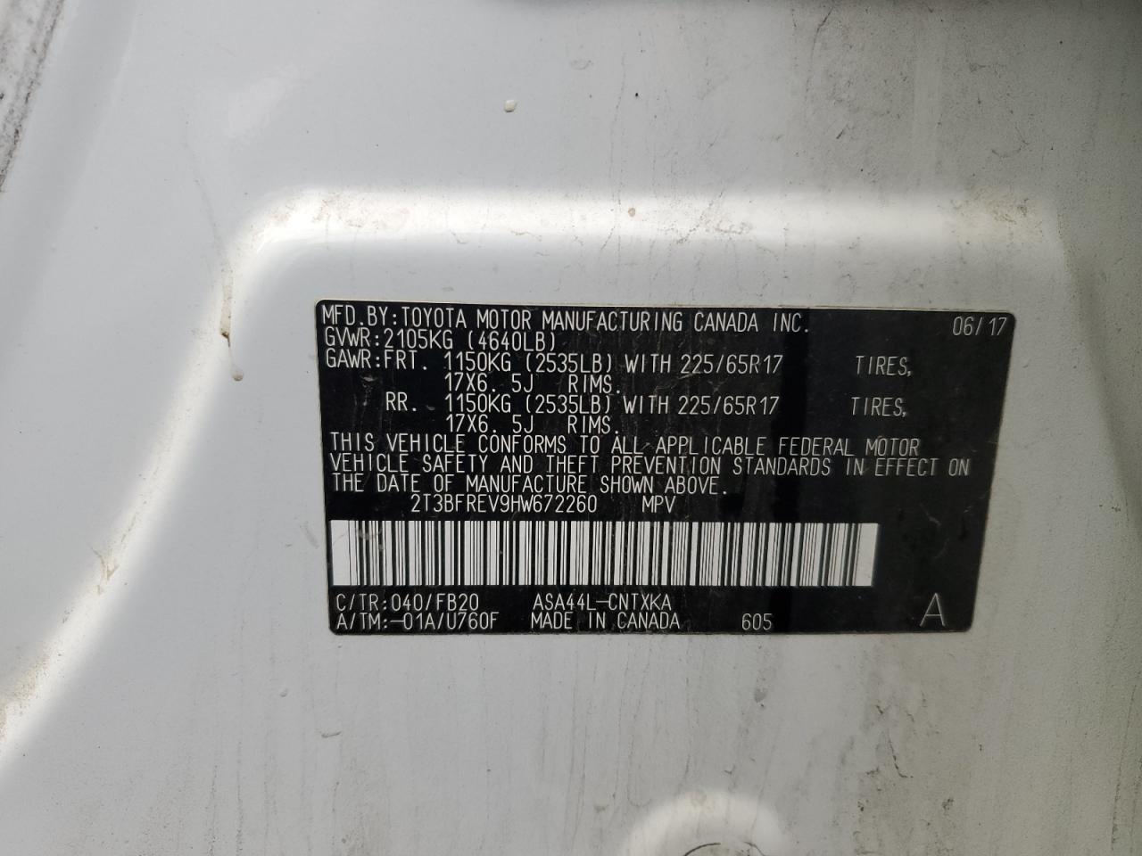 - ВИН: 2T3BFREV9HW******