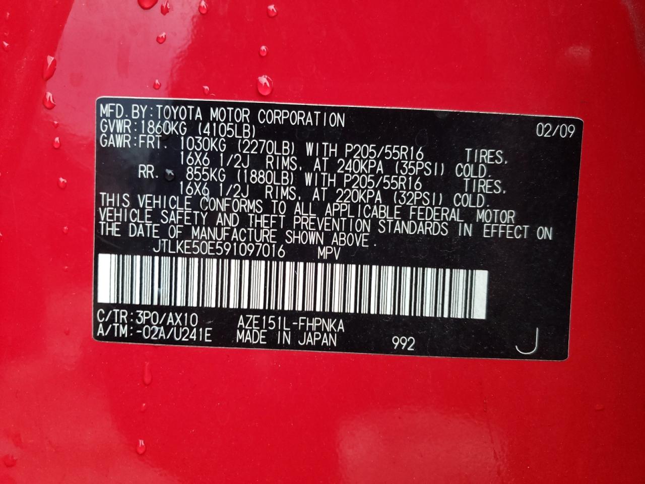 - ВИН: JTLKE50E591******